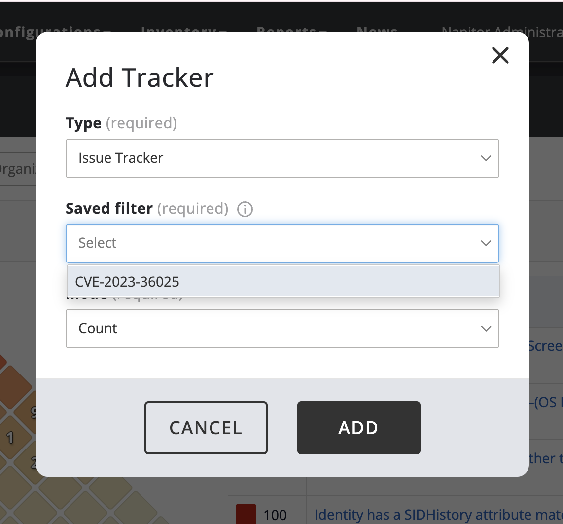 In the Issue search widget, enter the issue title or identifier (for example, a CVE ID) and click Search.